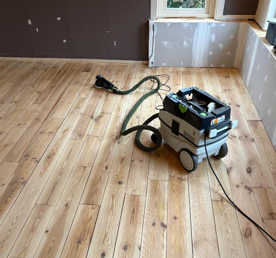 Houten vloer - van houtsoort Larix - had roetschade opgelopen. Renovatie was dus zeker nodig. En in Stavoren waren ze er blij mee!