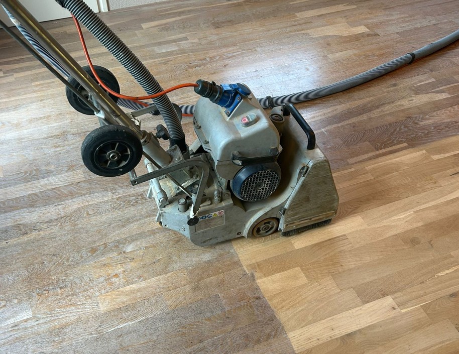 In deze woning in Sint Annaparochie hebben we een bestaande massief houten vloer volledig gerenoveerd. De vloer had in de loop van de jaren een donkere, doffe uitstraling gekregen en vertoonde gebruikssporen. Met een grondige houten vloer renovatie hebben we de vloer weer teruggebracht naar zijn originele, frisse en warme uitstraling.
